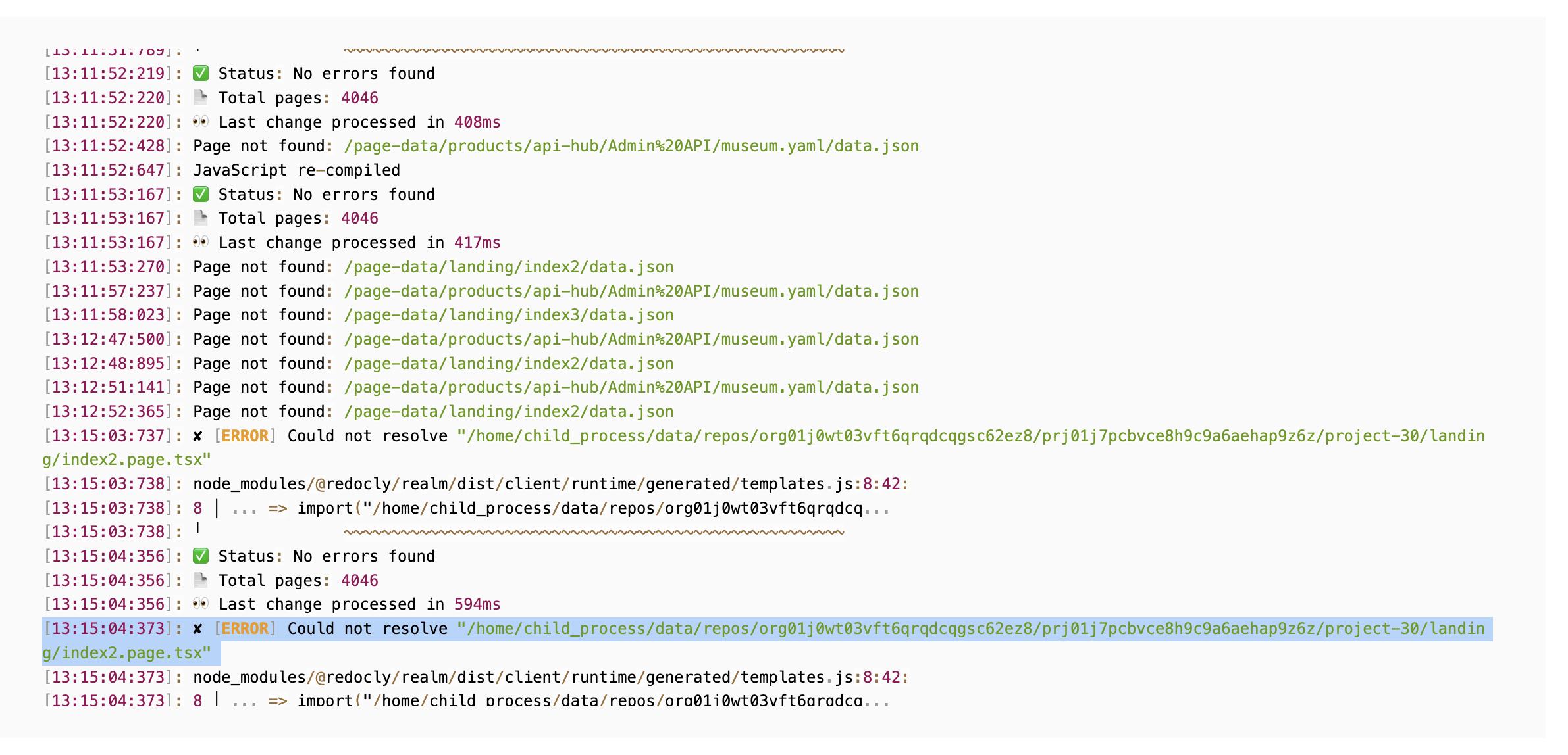 Realm responses with 500 after we deleted index2.page.tsx file.