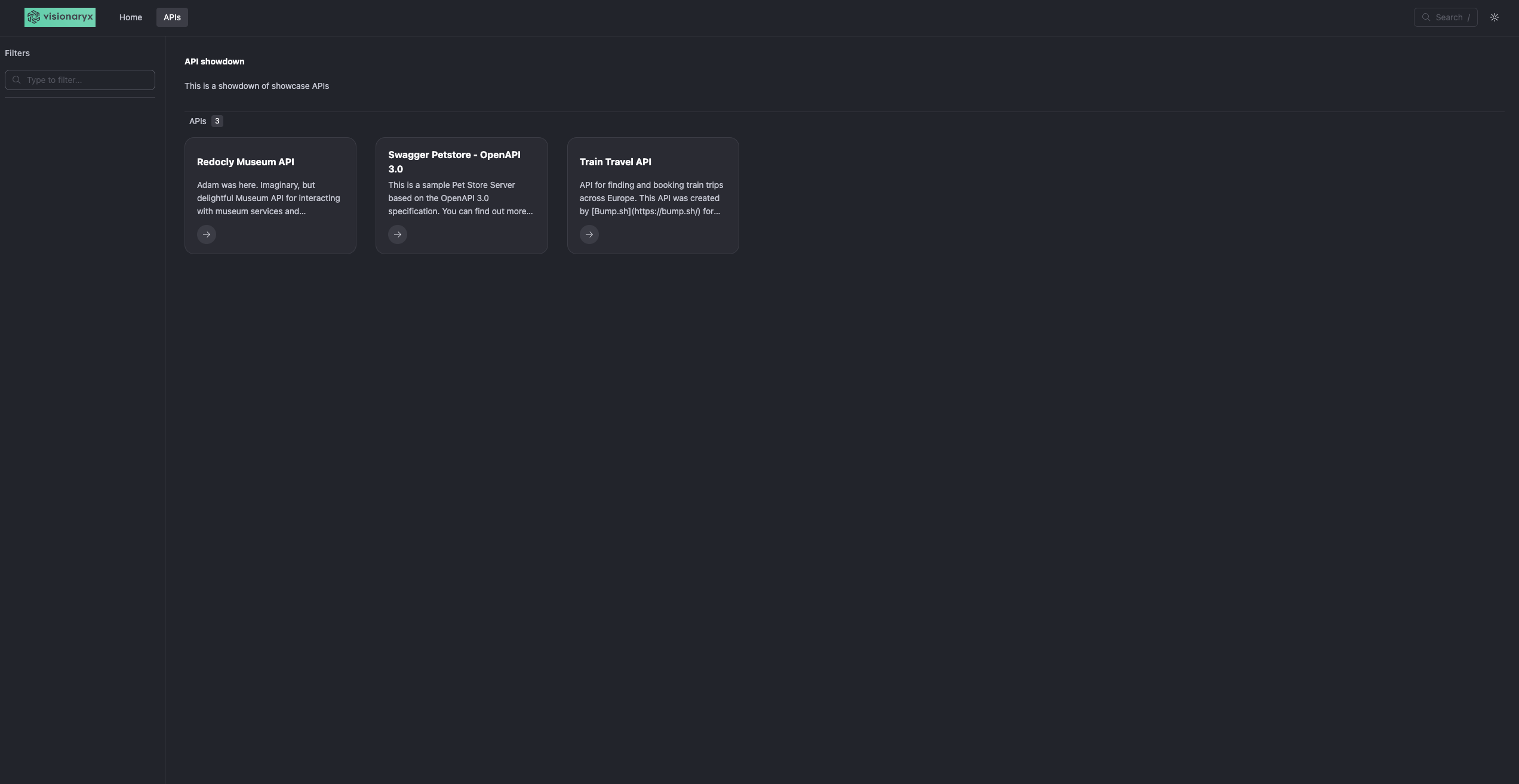 We're working on a website that integrates three APIs. During our evaluation, we considered three different layouts for presenting the APIs: a single sidebar, a navigation bar (navbar), and a catalog with tiles. Here's what we found: